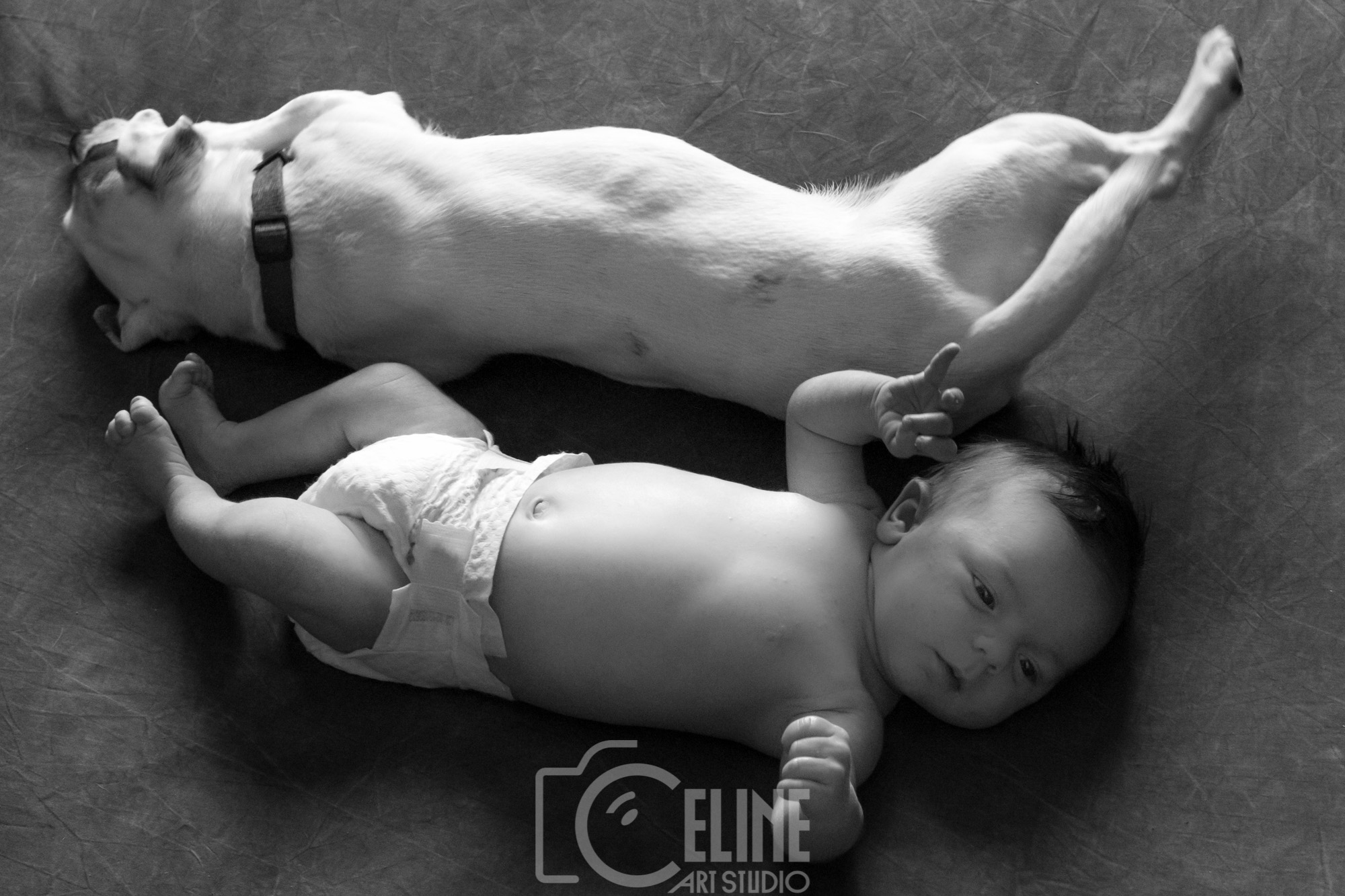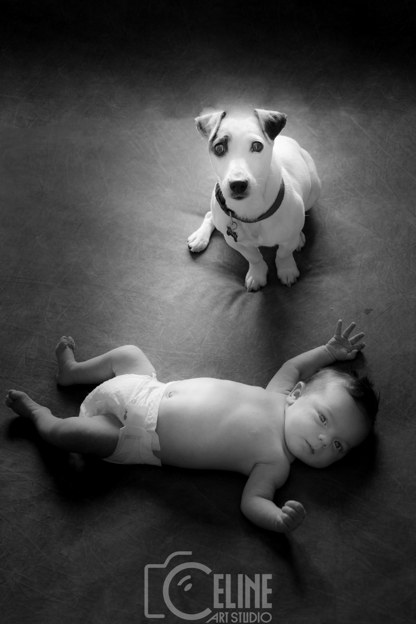 Sa petite compagne Jack russel a voulu participer au shooting, et ça a été plutôt sympa!! Et comme il n’avait pas de gros doudous à mettre à côté de lui pour comparer les tailles, ça donne une idée également.