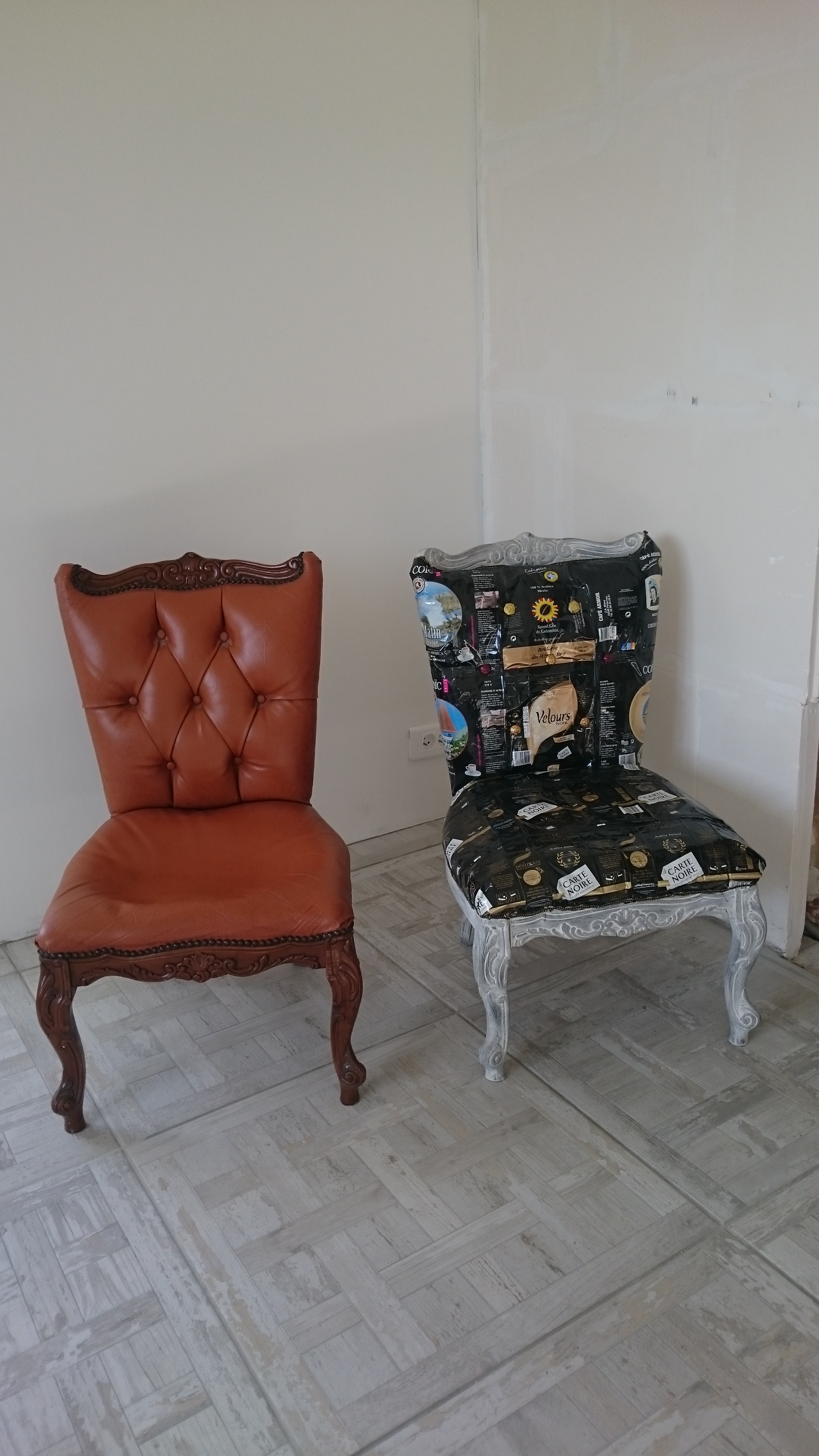 Rénovation/relooking d’un petit de fauteuil sur le thème café.