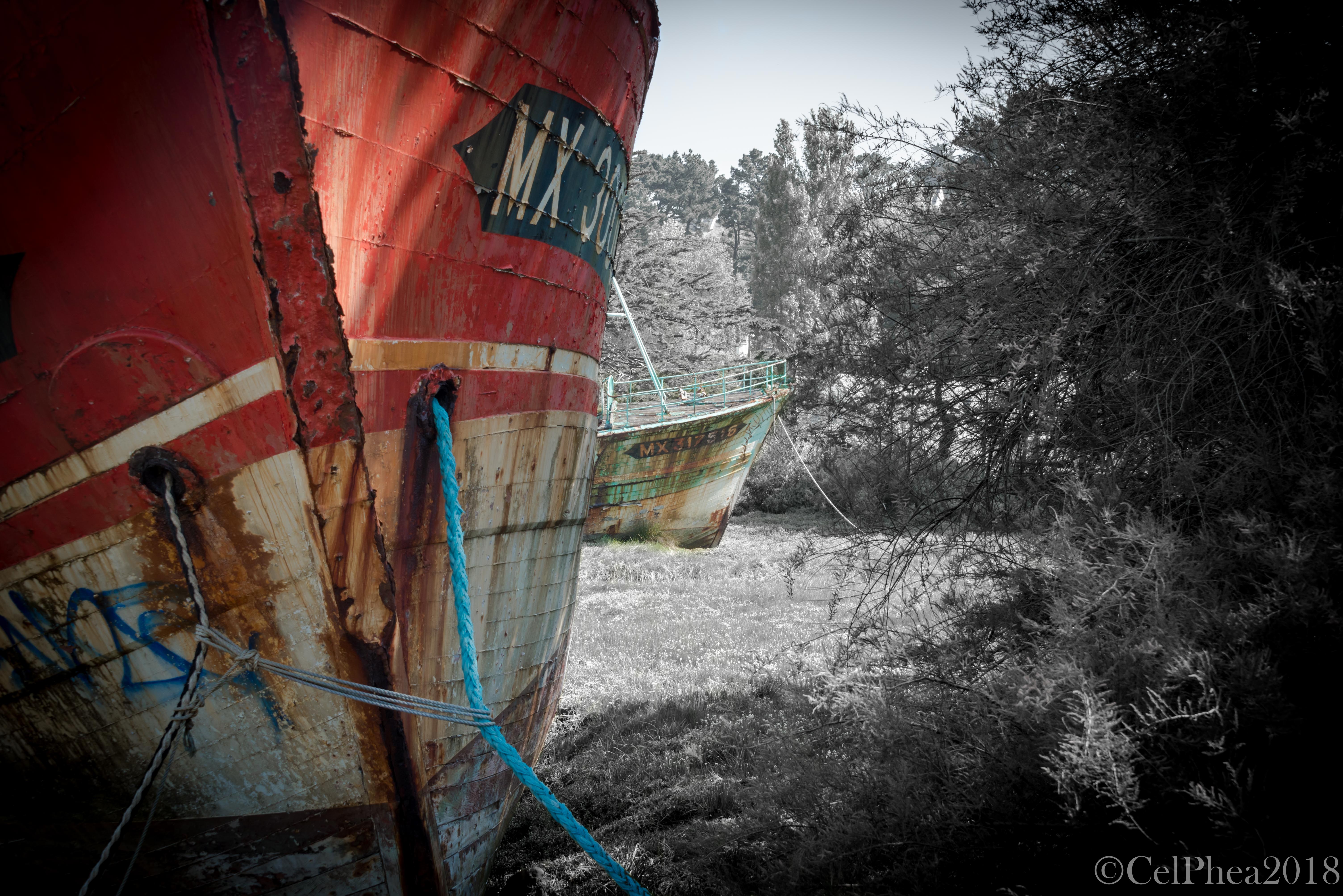 Ce cimetière de bateaux se trouve avant le Diben dans le Finistère, le long du GR 34