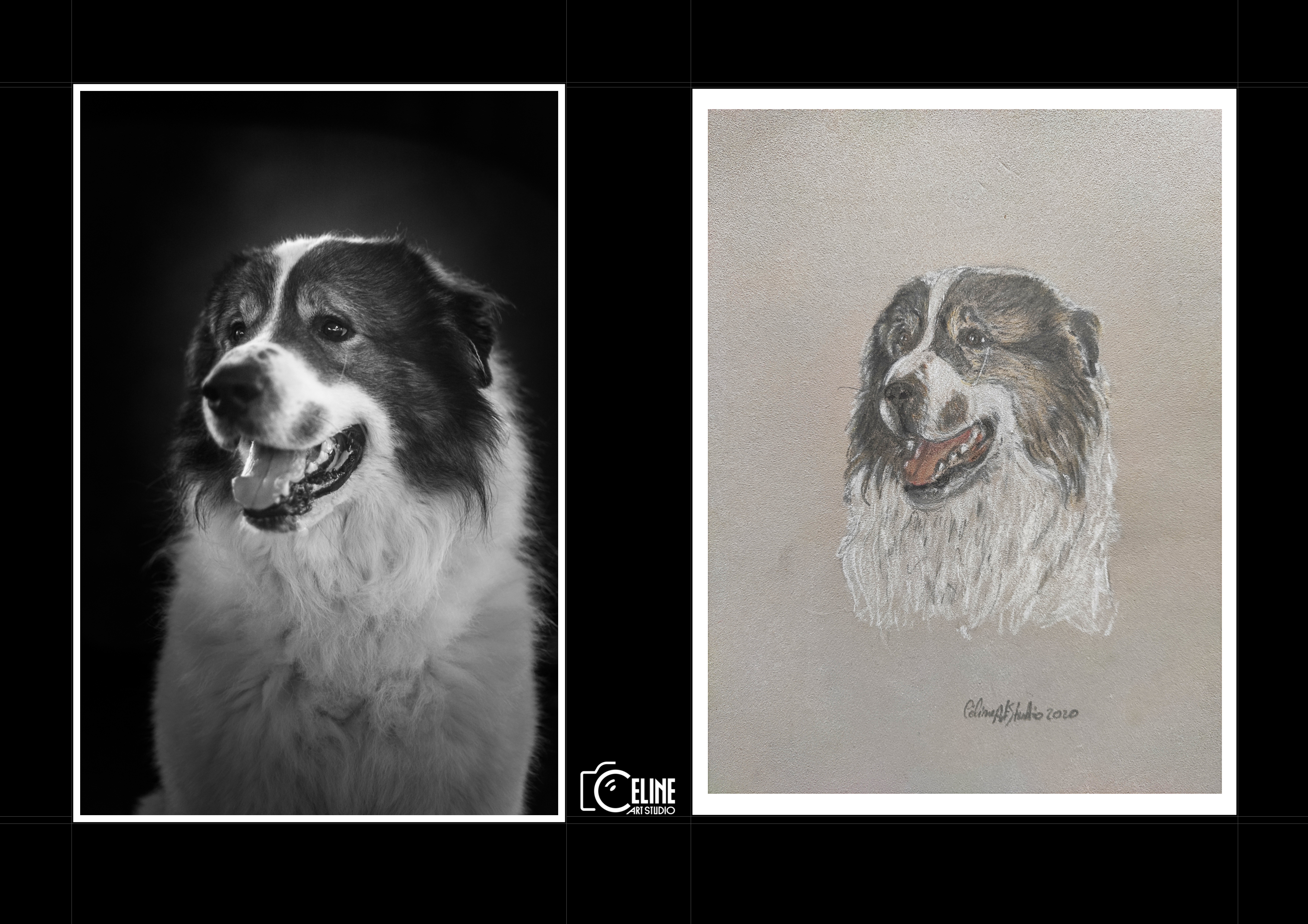 Je réalise également des dessins, basées sur nos photos (pastel ou aquarelle), je réuni ici 3 passions, la photographie, les animaux et le dessin.